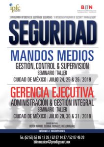 Con el propósito de cooperar con la formación técnica y de gestión en el campo de la Seguridad y presentar las “Mejores Prácticas” Profesionales, el Instituto de Postgrado y Formación Continua y el Bureau Internacional de Información y Negocios presentan conjuntamente un nuevo Programa Internacional de Formación, Actualización y Perfeccionamiento Profesional que comprende 2 Seminarios-Taller que habrán de desarrollarse de manera consecutiva y que estarán dirigidos a “Mandos Medios” (Supervisores y Coordinadores) y “Gerencia Ejecutiva” de Seguridad.
