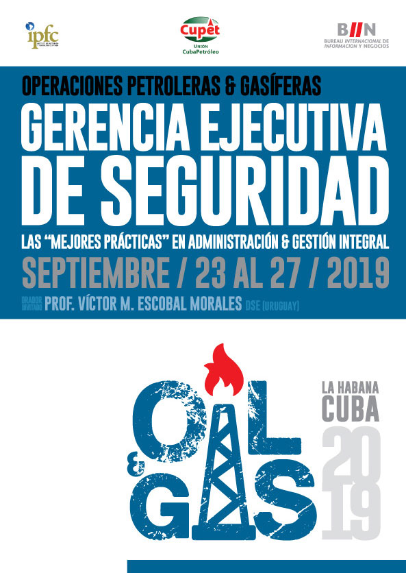 Dando continuidad al Ciclo de Actualización Profesional iniciado en Unión Cuba Petróleo en Septiembre 2018 con la impartición del Seminario de Gestión Estratégica de Riesgos, el nuevo Programa que habrá de impartirse está dirigido a la “GERENCIA EJECUTIVA DE SEGURIDAD EN INSTALACIONES & OPERACIONES PETROLERAS & GASÍFERAS”, actividad de formación y actualización profesional que permitirá presentar una Metodología de trabajo probada en la que se considera a la Seguridad como una función estratégica de la Empresa y, parte fundamental para la Continuidad del Negocio.
