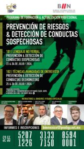 Julio 23 & 24, 2024, 16 horas - Seminario 102 – TÉCNICAS AVANZADAS DE ENTREVISTA & DETECCIÓN DE CONDUCTAS DESHONESTAS